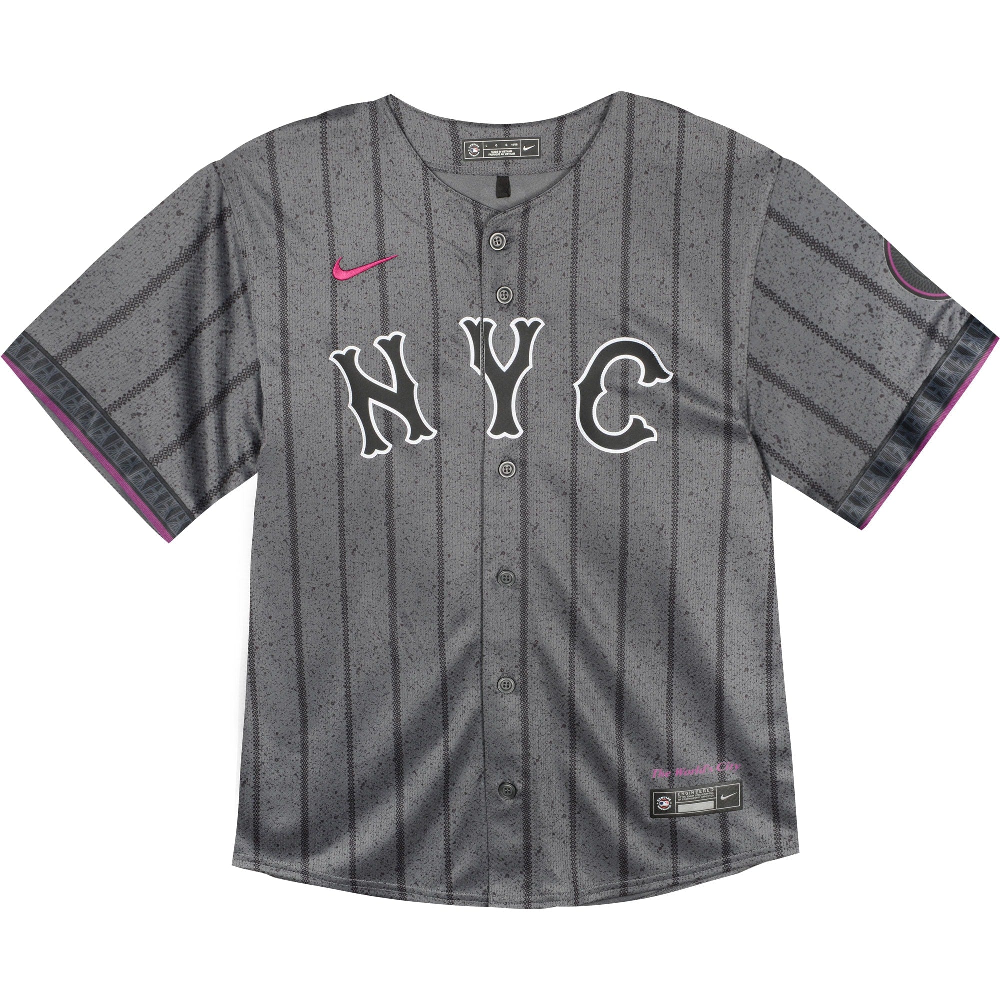 Have your kiddo display their pride for the "World's City" with this New York Mets 2024 City Connect Limited Player Jersey. The purple accents on this Nike design represent the 7 NYC Subway Service that takes fans to Citi Field every game day. The innovative Vapor Premier chassis allows for more flexible movement and teams up with Dri-FIT ADV technology to deliver exceptional sweat-wicking power. No matter which borough they reside in, show everyone just how proud your young fan is to be a New Yorker with this sweet New York Mets gear.
