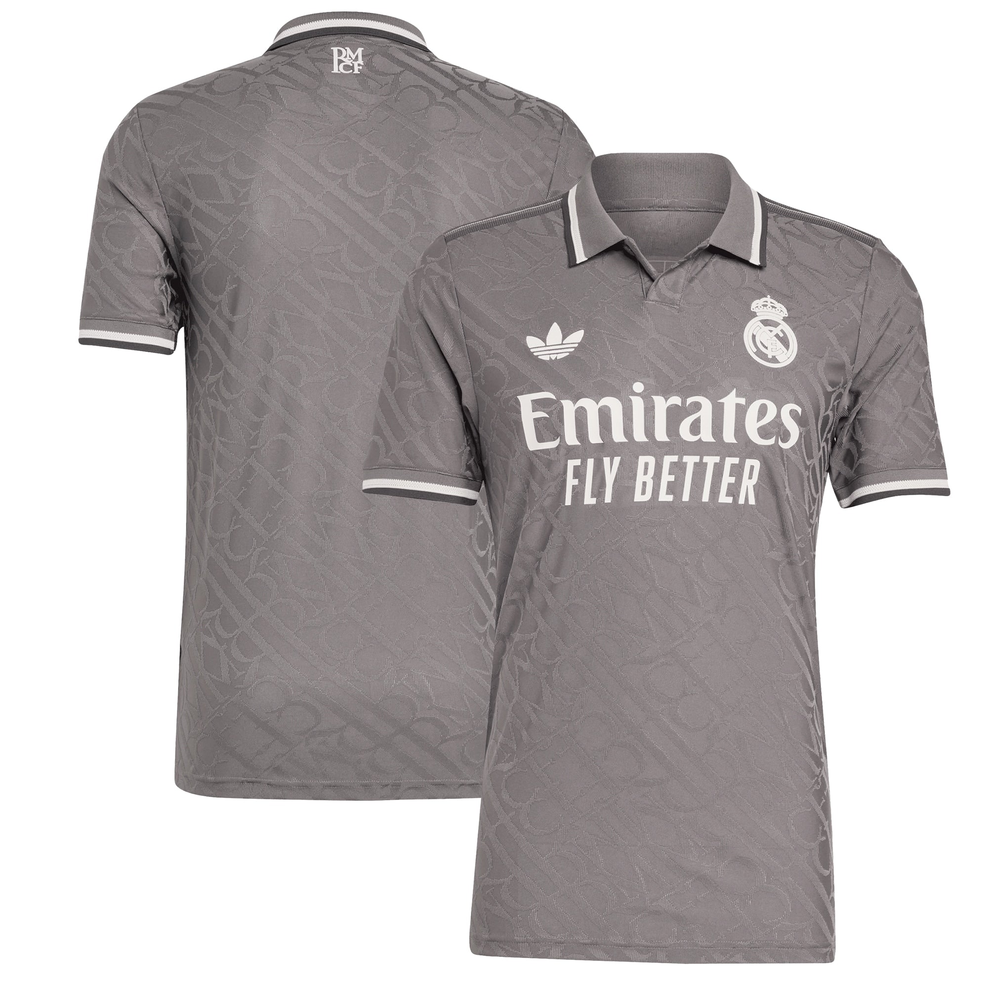 Elegance is their identity. The engineered "RMCF" monograms repeating across this Real Madrid third  jersey borrow their distinctive look from the lettering used on traditional Madrid street signs. Standing out from the classy design, the iconic Trefoil returns to an adidas match shirt after a long break. Behind it all, HEAT.RDY works hard to keep players cool and classy on the football field.This product is made with 100% recycled materials. By reusing materials that have already been created, we help to reduce waste and our reliance on finite resources and reduce the footprint of the products we make.